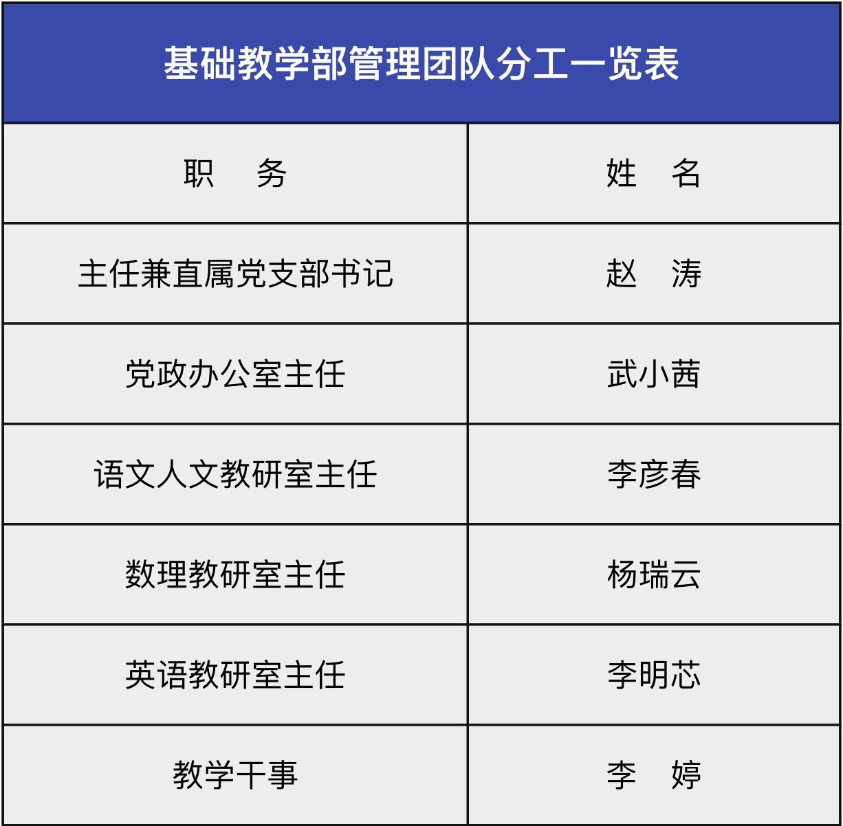 基础教学部管理团队分工一览表